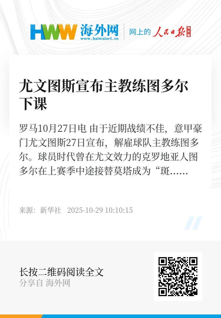新华社罗马10月27日电 由于近期战绩不佳,意甲豪门尤文图斯27日宣布,解雇球队主教练图多尔。