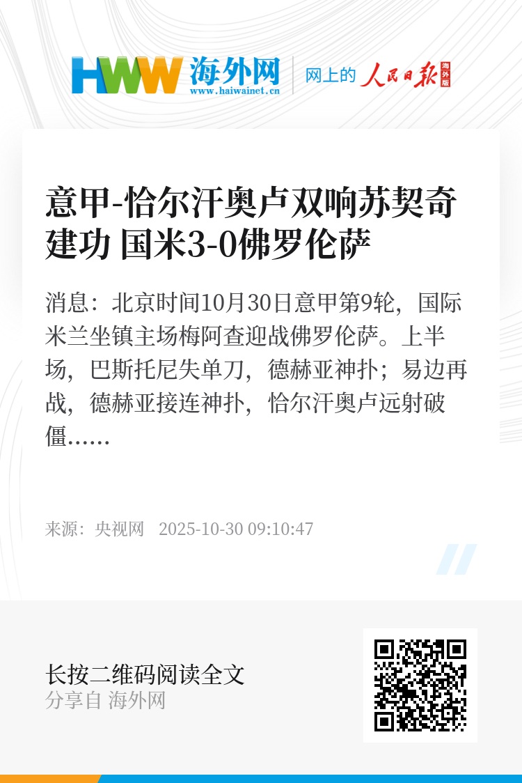 央视网消息:北京时间10月30日意甲第9轮,国际米兰坐镇主场梅阿查迎战佛罗伦萨。上半场,巴斯托尼失单刀,德赫亚神扑;易边再战,德赫亚接连神扑,恰尔汗奥卢远射破僵,苏契奇个人秀建功,博尼造点恰尔汗奥卢点射再下一城,维蒂两黄被罚下,最终国米3-0佛罗伦萨。积分榜方面,国米18分暂升第三,佛罗伦萨4分。