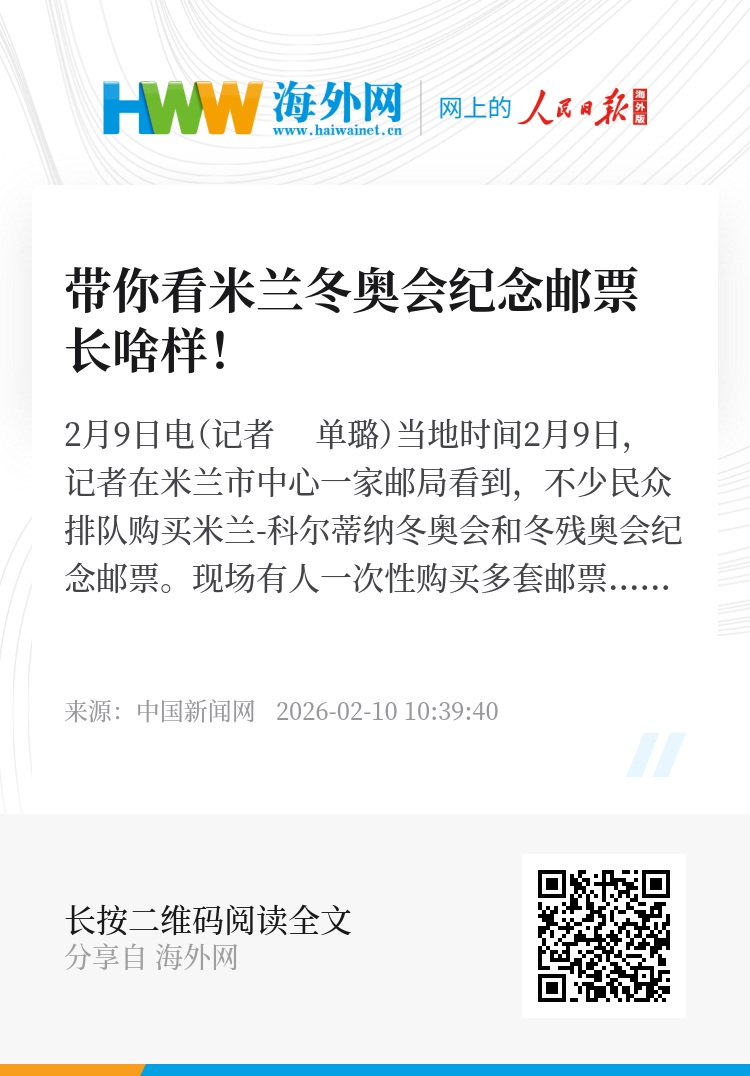 中新网2月9日电(记者 单璐)当地时间2月9日,记者在米兰市中心一家邮局看到,不少民众排队购买米兰-科尔蒂纳冬奥会和冬残奥会纪念邮票。现场有人一次性购买多套邮票和首日封,也有人请工作人员当场加盖纪念戳,留作收藏。