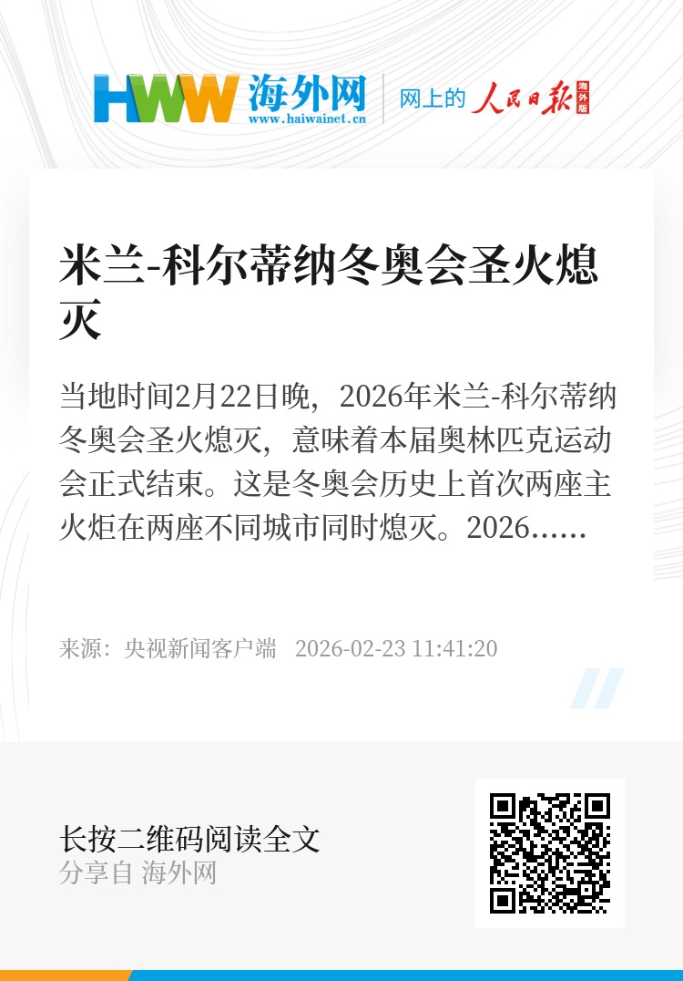 当地时间2月22日晚,2026年米兰-科尔蒂纳冬奥会圣火熄灭,意味着本届奥林匹克运动会正式结束。这是冬奥会历史上首次两座主火炬在两座不同城市同时熄灭。