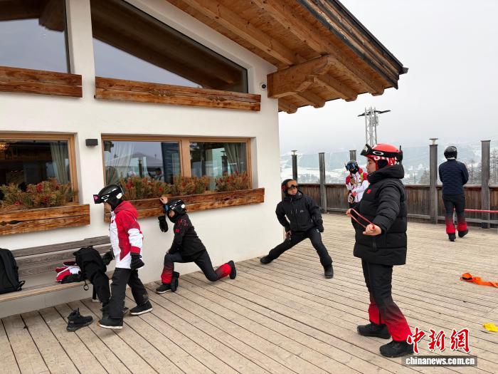 这是队员们在意大利科尔蒂纳丹佩佐进行赛前训练时的一幕。这次训练主要是帮助运动员感受当地的雪温、雪质,为适应正式比赛场地做准备。