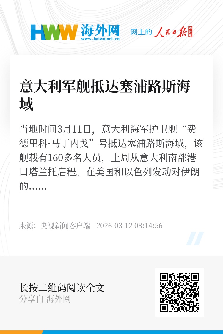 在美国和以色列发动对伊朗的军事袭击后,位于塞浦路斯的英国皇家空军基地阿克罗蒂里于3月2日0时左右遭到无人机袭击,造成“有限损失”。随后,希腊、法国、西班牙、英国、荷兰和意大利等国家宣布向塞浦路斯派遣军舰,以加强该国的防务能力。(总台记者 杨明交)